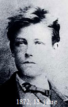 Rimbaud est né le 20 octobre 1854 à Charleville (aujourd’hui Charleville-Mézières) dans les Ardennes. Dès l’âge de dix ans il commença à écrire des poèmes. A 17 ans il écrivit le poème ésotérique et prophétique „Le bateau ivre“(1871), qu’il présenta à Paul Verlaine. Cette œuvre se révéla fortement influencée par Charles Baudelaire, pourtant elle restait avec son originalité métaphorique et la richesse de ses associations aux sombres codes absolument autonome, ce qu’il constata lui-même avec un mélange d’assurance et de résignation («Oui, on n’a rien écrit de semblable, je le sais bien »). Rimbaud suivit le conseil de Verlaine et partit à Paris où ils vécurent ensemble une liaison homophile. La rupture advint lorsque Verlaine blessa gravement Rimbaud en tentant de le tuer. Rimbaud en témoignera dans le poème en prose très rythmé et à caractère autobiographique «Une Saison en enfer» (1873), qui par sa dynamique et son style radicalement abolisseur de limites marquera un tournant dans l’histoire de la littérature. Alors commença une vie de route sans répit qui mena le poète en Angleterre, en Allemagne, en Italie, à Java, en Scandinavie et à Chypre. Il gagna sa vie entre autres comme professeur de langues, légionnaire, traducteur de cirque et chef d’équipe dans une carrière.